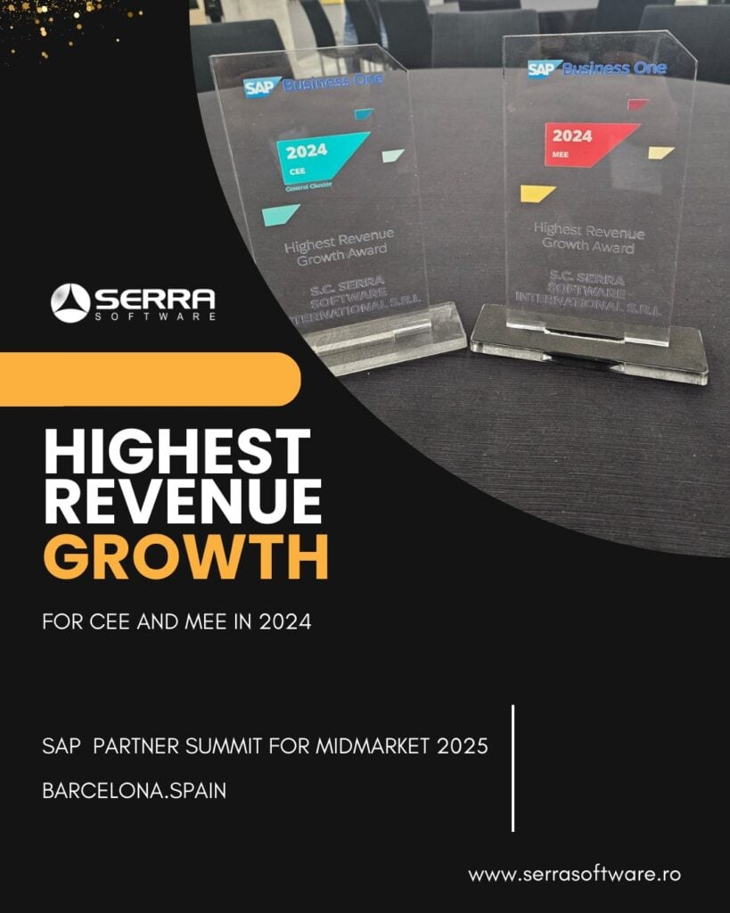 Premiul „Highest Revenue Growth” demonstrează că Serra Software nu doar se dezvoltă rapid, ci și în direcția corectă — alături de SAP, contribuind la digitalizarea mediului de afaceri din România.